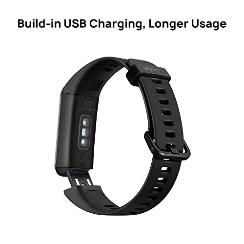 - Carga usb incorporada: liberate de cables y cargadores; el enchufe usb incorporado de huawei band 4 se adapta a los cargadores usb generales para que puedas cargarlo en cualquier lugar y en cualquier momento; una sola carga permite más de 6 días de tiempo de uso